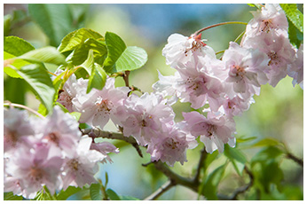 ヤマザクラ系のサトザクラとシナミザクラの雑種といわれる。高さ2~5mになる。